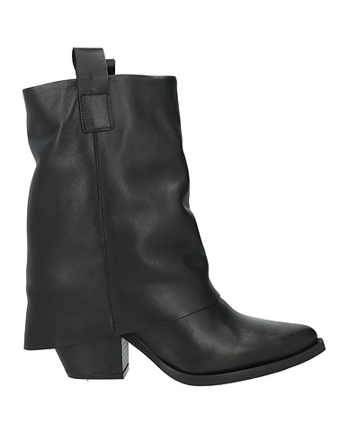 cowboy ankle boots, leather, solid color, no appliqués, fully lined, pointed toe, cuban heel, rubber sole, contains non-textile parts of animal origin