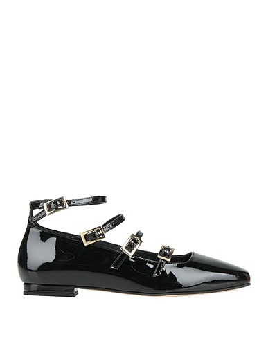 mary jane flats, patent leather, solid color, no appliqués, leather lining, buckle fastening, square toe, flat, leather/rubber sole, contains non-textile parts of animal origin
