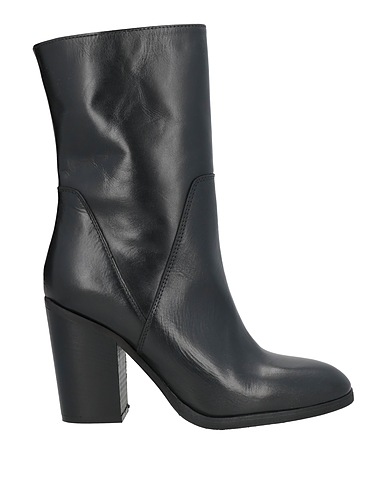 ankle boots, leather, solid color, no appliqués, leather lining, round toe, square heel, rubber cleated sole, contains non-textile parts of animal origin