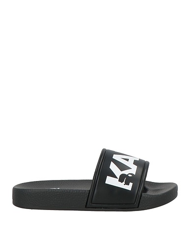 pool slides, rubber, solid color with print, brand logo, rubber lining, round toe, flat, rubber sole