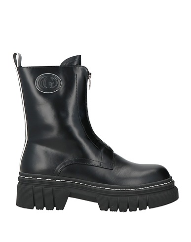 ankle boots, leather, solid color with appliqués, brand logo, fully lined, zipper fastening, round toe, square heel, rubber heel, rubber sole, contains non-textile parts of animal origin
