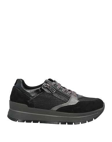 low-top sneakers, leather, patent leather, metallic, two-tone, brand logo, suede trims , technical fabric inner, lace-up, zipper fastening, round toe, rubber cleated sole, contains non-textile parts of animal origin