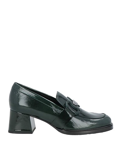 loafers, glossed-leather, solid color with appliqués, embellished, leather lining, round toe, square heel, covered heel, rubber sole, contains non-textile parts of animal origin