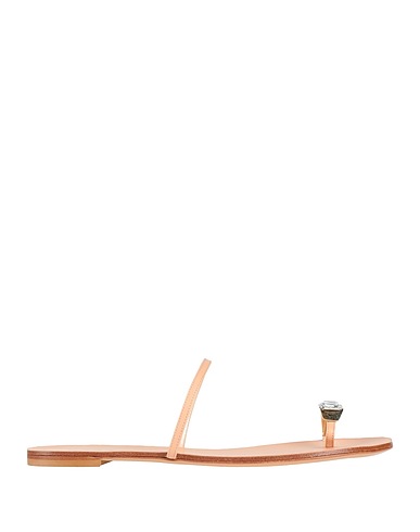toe strap sandals, leather, solid color with appliqués, crystals, leather lining, round toe, flat, leather sole, contains non-textile parts of animal origin