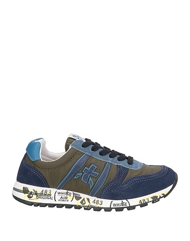low-top sneakers, suede, shell, multicolor, brand logo, leather lining, lace-up, round toe, rubber sole, contains non-textile parts of animal origin
