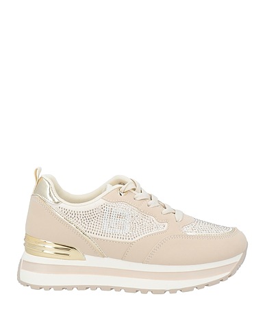 low-top sneakers, coated fabric, suede-effect fabric, crystals, metallic trim, two-tone, technical fabric inner, lace-up, round toe, rubber cleated sole