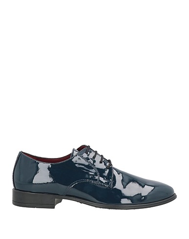 derby shoes, patent leather, solid color, no appliqués, leather lining, round toe, flat, rubber sole, contains non-textile parts of animal origin