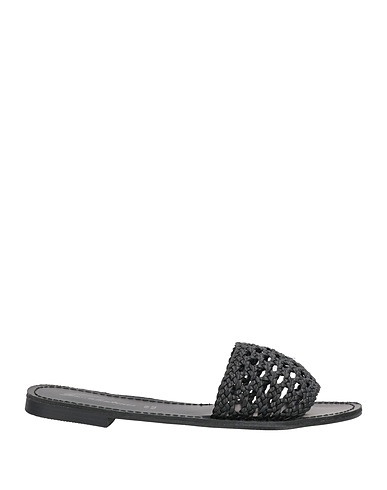 slide sandals, leather, no appliqués, solid color, leather lining, round toe, flat, leather/rubber sole, contains non-textile parts of animal origin