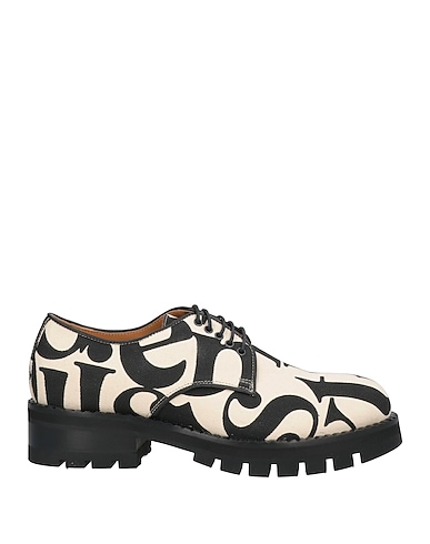 derby shoes, canvas, no appliqués, logo-print, leather lining, round toe, square heel, lug sole, contains non-textile parts of animal origin