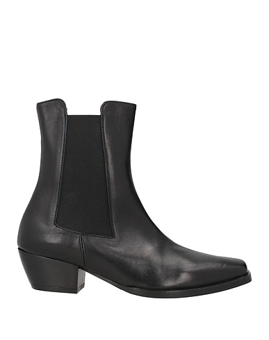 cowboy ankle boots, leather, solid color, no appliqués, leather lining, elasticized inserts, square toe, cuban heel, leather/rubber sole, contains non-textile parts of animal origin