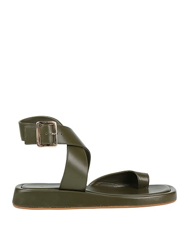 toe strap sandals, leather, solid color, no appliqués, leather lining, buckle-fastening ankle strap, square toe, flat, rubber sole, contains non-textile parts of animal origin