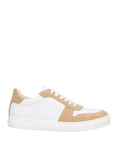 low-top sneakers, pebbled-leather, suede, two-tone, brand logo, leather lining, lace-up, round toe, rubber cleated sole, contains non-textile parts of animal origin
