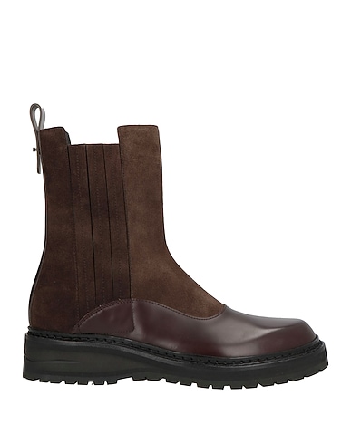 boots, leather, suede, solid color, no appliqués, leather lining, elasticized inserts, round toe, wedge heel, rubber sole, contains non-textile parts of animal origin