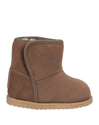 padded ankle boots, suede, solid color, brand logo, plush fabric inner, velcro fastening, round toe, flat, rubber cleated sole, contains non-textile parts of animal origin