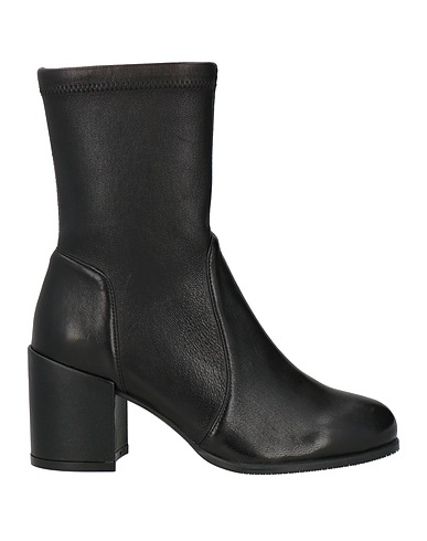 ankle boots, leather, solid color, no appliqués, fabric inner, round toe, square heel, rubber sole, contains non-textile parts of animal origin