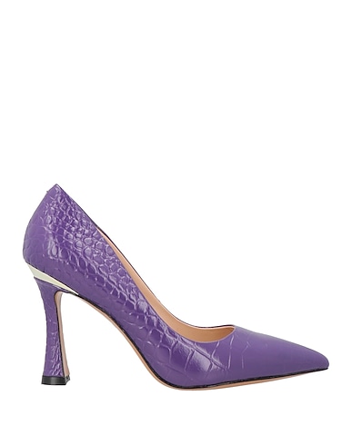 pumps, leather, crocodile-print, brand logo, pointed toe, spool heel, leather sole, leather lining, contains non-textile parts of animal origin