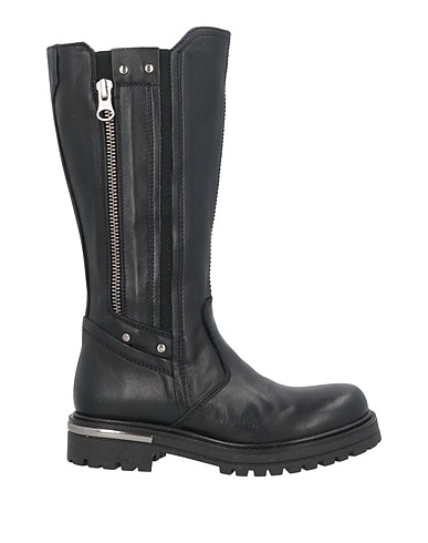 boots, leather, solid color with appliqués, studs, leather lining, zipper fastening, round toe, flat, lug sole, contains non-textile parts of animal origin