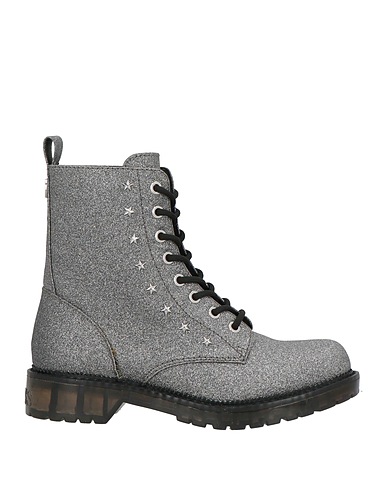 lace-up ankle boots, synthetic material, solid color with appliqués, brand logo, studs, leather lining, lace-up, round toe, low heel, rubber cleated sole, contains non-textile parts of animal origin