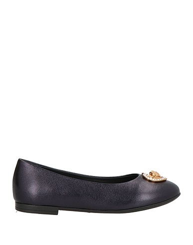 ballet flats, leather, solid color with appliqués, embellished, brand logo, leather lining, round toe, flat, rubber sole, contains non-textile parts of animal origin