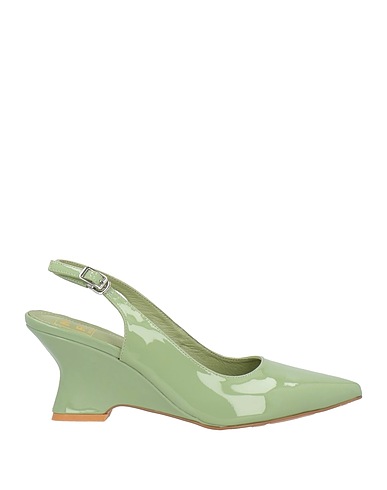 slingback pumps, patent leather, solid color, no appliqués, leather lining, buckle fastening, pointed toe, geometric heel, rubber sole, contains non-textile parts of animal origin