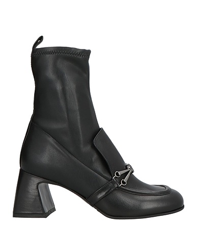 sock ankle boots, leather, solid color with appliqués, brand logo, embellished, leather lining, square toe, square heel, covered heel, rubber sole, contains non-textile parts of animal origin