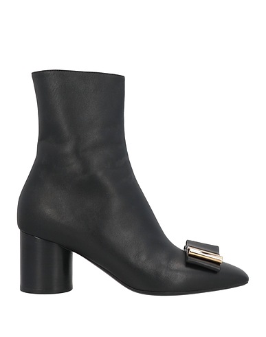 ankle boots, leather, solid color with appliqués, bow-detailed, brand logo, leather lining, zipper fastening, square toe, square heel, leather sole, contains non-textile parts of animal origin