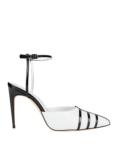 pumps, leather, patent leather, two-tone, no appliqués, leather lining, buckle-fastening ankle strap, pointed toe, spike heel, leather sole, contains non-textile parts of animal origin, large sized