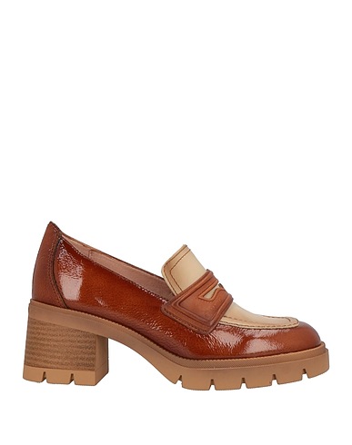 chunky loafers, glossed-leather, leather, two-tone, no appliqués, fabric inner, round toe, square heel, rubber cleated sole, contains non-textile parts of animal origin