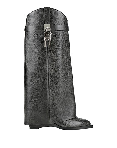 boots, pebbled-leather, solid color with appliqués, brand logo, embellished, leather lining, pointed toe, wedge heel, leather sole, contains non-textile parts of animal origin