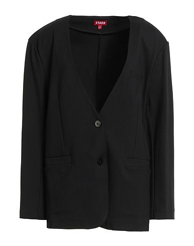 single-breasted blazer, jersey, stretchy fabric, solid color, no appliqués, v-neck, long sleeves, unlined, button fastenings, patch pockets, one chest pocket, dry clean, do not tumble dry