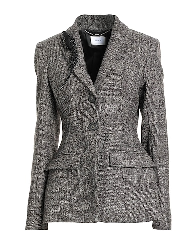 single-breasted blazer, tweed, two-tone, brooch, lapel collar, long sleeves, fully lined, button fastenings, flap pockets, dry clean, do not bleach, do not tumble dry