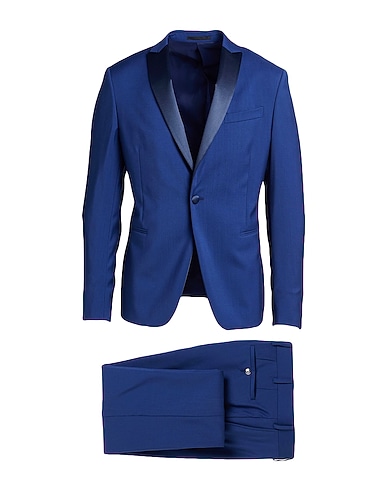 single-breasted suit, cool wool, solid color, satin trims, lapel collar, long sleeves, fully lined, 1 button, multipockets, internal pockets, rear slit, mid rise, dry clean, do not bleach, do not tumble dry