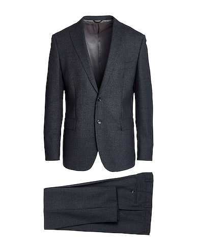 single-breasted suit, flannel, stretchy fabric, two-tone, no appliqués, lapel collar, long sleeves, fully lined, button fastenings, zipper fastening, multipockets, dry clean, do not bleach, do not tumble dry