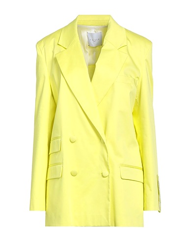 double-breasted blazer, woven, stretchy fabric, solid color, embroidered logo, lapel collar, long sleeves, shoulder pads, fully lined, button fastenings, flap pockets, one chest pocket, rear slit, dry clean, do not bleach, do not tumble dry