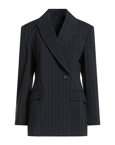double-breasted blazer, cool wool, pinstriped, no appliqués, lapel collar, long sleeves, fully lined, button fastenings, flap pockets, contains non-textile parts of animal origin, dry clean, do not bleach, do not tumble dry, power dressing meets elegance in this chic office outfit that will inspire confidence every day