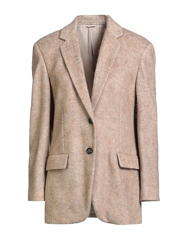 single-breasted blazer, brushed-felt, knitted, lightweight knit, solid color, no appliqués, lapel collar, long sleeves, fully lined, button fastenings, flap pocket, dry clean, do not bleach, do not tumble dry
