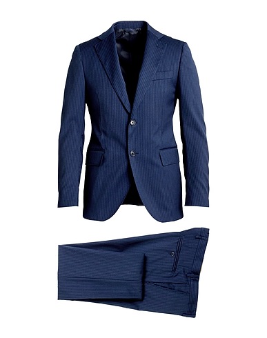 single-breasted suit, cool wool, pinstriped, no appliqués, lapel collar, long sleeves, fully lined, button fastenings, flap pockets, one chest pocket, dry clean, do not bleach, do not tumble dry, get your look right with this designer outfit, suited for business meetings or special occasions