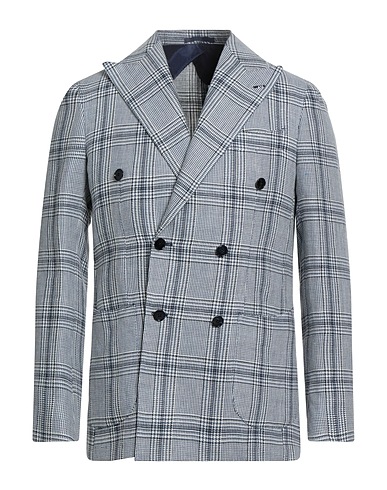 double-breasted blazer, tweed, tartan pattern, no appliqués, lapel collar, long sleeves, partially lined, button fastenings, patch pockets, one chest pocket, dual back vents, dry clean, do not bleach, do not tumble dry
