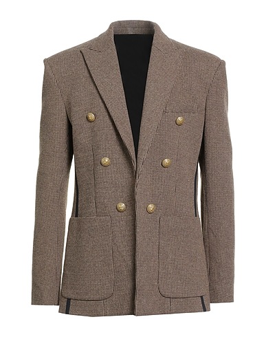 double-breasted blazer, jersey, stretchy fabric, houndstooth, no appliqués, lapel collar, long sleeves, shoulder pads, fully lined, one chest pocket, patch pockets, rear slit, dry clean, do not bleach, do not tumble dry, this brand runs large