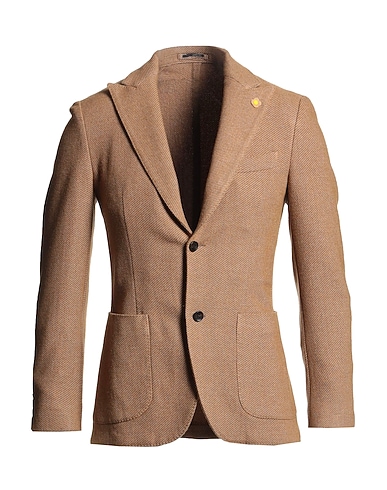 single-breasted blazer, tweed, solid color, brooch, lapel collar, long sleeves, partially lined, button fastenings, one chest pocket, patch pockets, dry clean, do not bleach, do not tumble dry