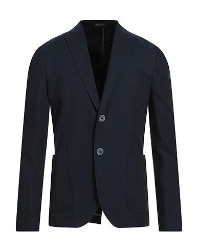 single-breasted blazer, woven, two-tone, no appliqués, lapel collar, long sleeves, buttoned cuffs, partially lined, button fastenings, one chest pocket, patch pockets, rear slit, dry clean, do not bleach, do not tumble dry