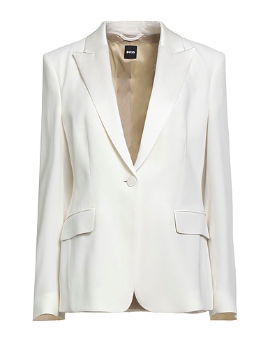 single-breasted blazer, crepe, solid color, satin trims, lapel collar, long sleeves, buttoned cuffs, fully lined, button fastenings, flap pockets, rear slit, dry clean, do not bleach, do not tumble dry