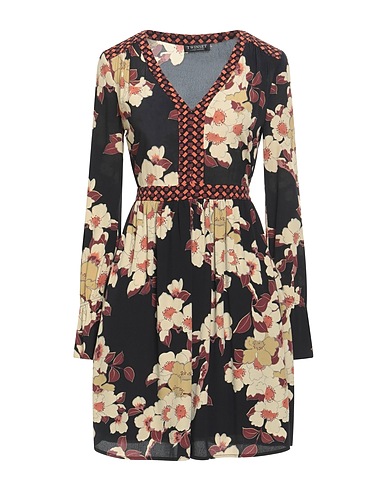 crepe, no appliqués, floral-print, v-neck, long sleeves, zipper fastening, multipockets, dry clean, do not tumble dry, do not bleach, flared dress