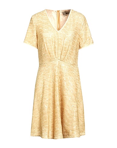 sequinned dress, knitted, lightweight knit, solid color with appliqués, sequins, v-neck, short sleeves, fully lined, zipper fastening, without pockets, hand wash or dry clean, do not bleach, do not tumble dry