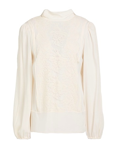 crêpe, lace, pleated detailing, bow collar, long sleeves, rear closure, button closing, no pockets, basic solid color