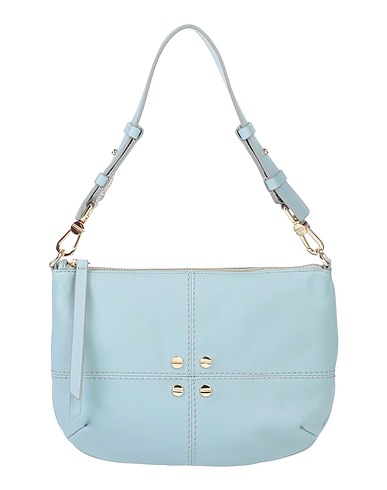 handbag, leather, solid color with appliqués, studs, zipper fastening, internal pockets, detachable top handle, medium, contains non-textile parts of animal origin