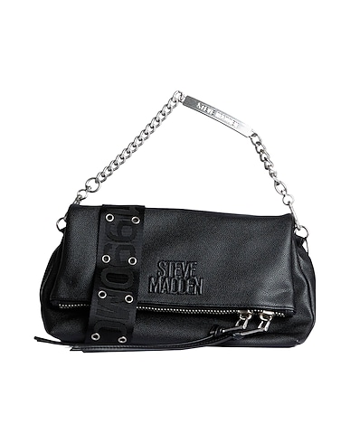 flap bag, synthetic material, solid color, brand logo, velcro fastening, snap fastenings, fully lined, adjustable shoulder strap, medium size