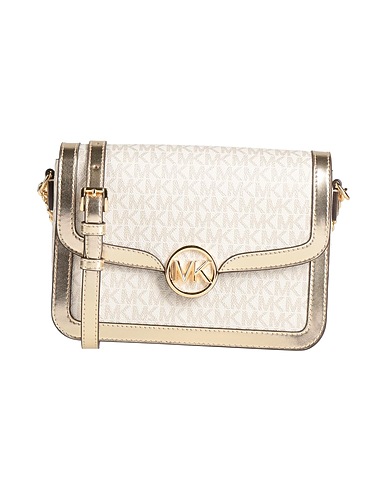 flap bag, synthetic material, metallic, logo-print, brand logo, magnetic fastening, fully lined, adjustable shoulder strap, medium size