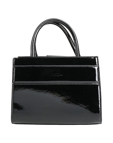 tote, synthetic material, patent-effect, solid color, brand logo, magnetic fastening, fully lined, internal zip pocket, double handle, detachable shoulder strap, medium size