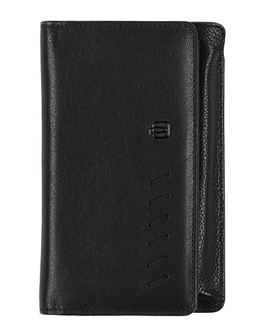 document case, leather, solid color, brand logo, leather lining, snap fastenings, internal pockets, card slots, contains non-textile parts of animal origin